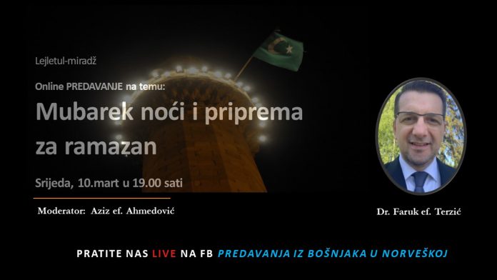 Povodom Lejle i Miradža, koji ove godine pada u srijedu, 10.03.2021. organizujemo online predavanje na temu mubarek noći i priprema za ramazan.