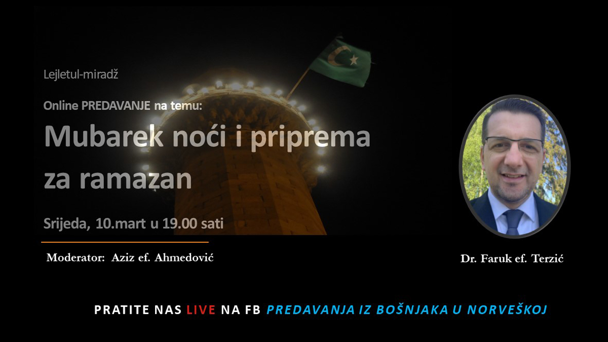 Kako bi pratili ovo a i buduća online predavanja potrebno je da se priključite na grupu Predavanja IZ Bošnjaka u Norveškoj na Facebook-u gjde će program biti emitovan uživo.