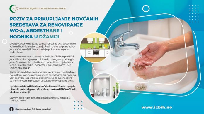 Ovog ljeta ćemo uz Božiju pomoć renovirati WC, abdesthanu, kuhinju i hodnik u našoj džamiji.